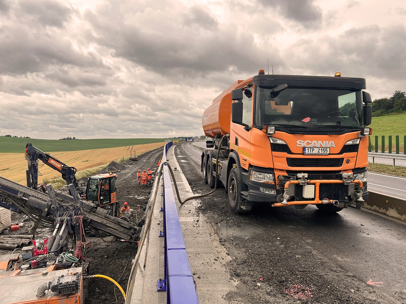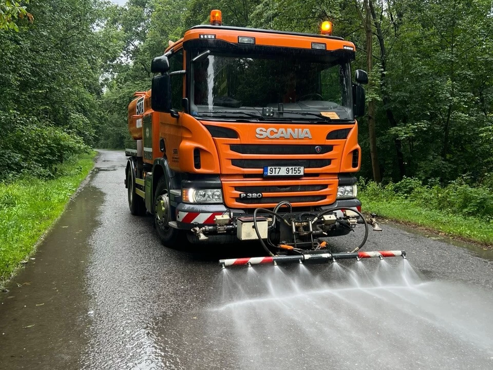 – kropení při stabilizování zeminy a při pokládání MZK vrstev